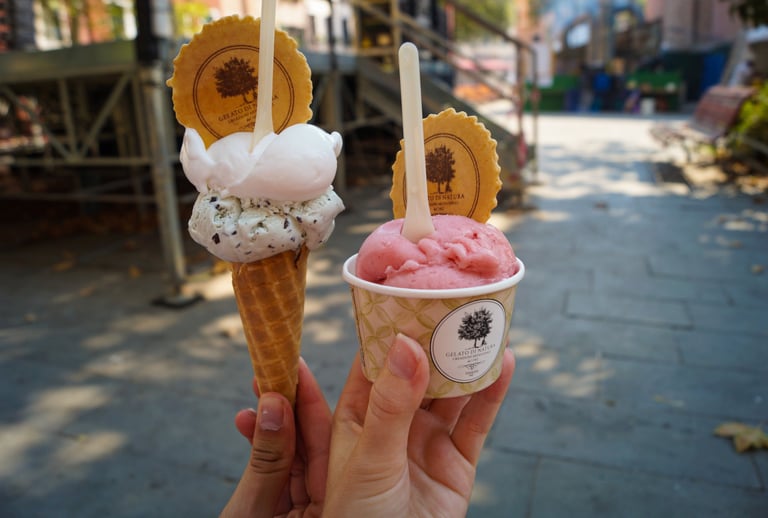 Après avoir marché pendant plusieurs heures, nous avons décidé de faire une petite pause goûter. Le propriétaire de notre Airbnb nous avait recommandé d’aller manger une glace à Gelato di Natura.